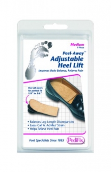 *Unique Lift elevates heel to balance differences in leg length that can cause hip back and biomechanical problems *Also helps relieve heel spurs Achilles tendonitis and related conditions * Interchangeable for left or right foot * Peel off layers to adjust height 1/8 to 3/8 * Durable suede top cover HCPC CODE: L3332