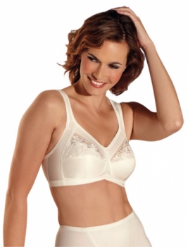 This is a great post-surgery bra for women who need more shaping and support. The top of the cups feature semi-sheer mesh with feminine floral embroidery.