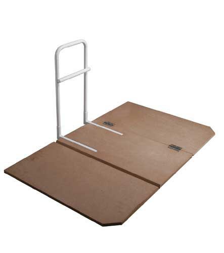 Assistance for getting in and out of bed * Can be used on either side of the bed * Tri - fold wood board for easy portability and storage * Easy quick no tool assembly * Comes in 2 pieces * Simply slides under the mattress for extra firm support (between mattress and box spring) * Removable powder coated steel handle enables user to remove when not in use * Handle with the Mid Bar creates easy grip for any height use * Rail dimensions: 11« (W)x22« (H)x26« (D) * Weight limit is 250 lbs * Board dimensions: 48 x 35 *