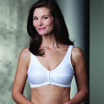 Front & Back Closure Lace Accent Softcup. Ideal for women with limited upper body mobility, arthritis or lymphedema.