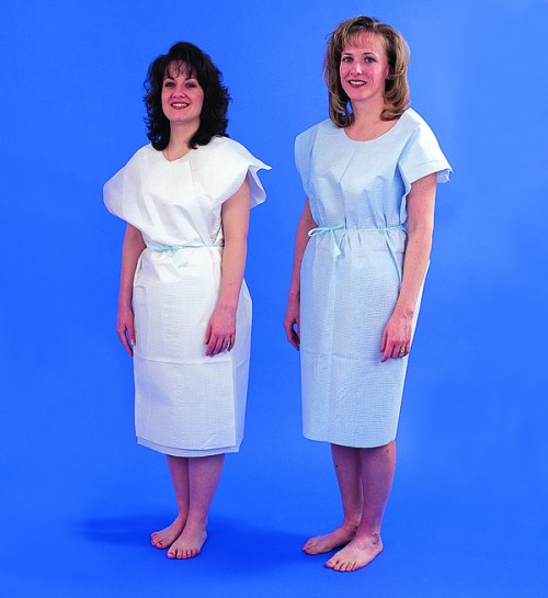 Blue Cs/50 * Modest versatile front/back open design * 30 x 42 * tissure / poly/ tissue backing * Shipping Carton Size: 16 L x 12 W x 10 H