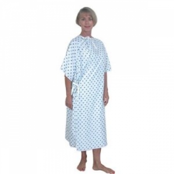 * This heavy weight 4+ ounce per square yard twill washable hospital gown is blended 55% cotton and 45% polyester * Features roomy sleeves print design and an overlap back for modesty * Tie closure * One size fits most