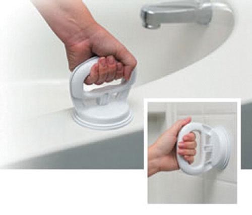 Portable balance assist for shower or tub! * Easy to remove or relocate * Suction cup design attaches easily to tub rail or shower wall * Can be used horizontally or vertically * To be used only as a balancing assist not for body weight leverage * No Tools Required *