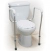 Non-retail box * Lightweight anodized aluminum frame offers safe assistance * Waterfall armrests provide added patient comfort * Nylon coated steel bracket attaches unit to toilet * Legs adjust to accommodate all toilet styles * Width between arms 18 - 25 * 300Lbs. weight capacity * Height adjusts: 27 - 31