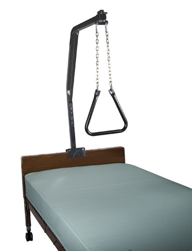 Standard - 250 Lb. Weight capacity * Trapeze Bar & Base with Clamps * Silver Vein steel tubing * Fully adjustable for height horizontal position and hand bar support distance * Frames attach easily to headboard * Plastic coated brackets protect bed finish * The bracket is adjustable to fit headboards that are anywhere from 1 to 3« * The mast is 46 long clamps to the headboard and is height adjustable