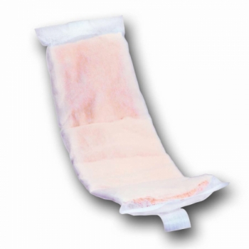 Use in underwear. Secured with adhesive strip. Superabsorbent construction allows for high retention capacity-locks moisture and odor in, even under pressure.